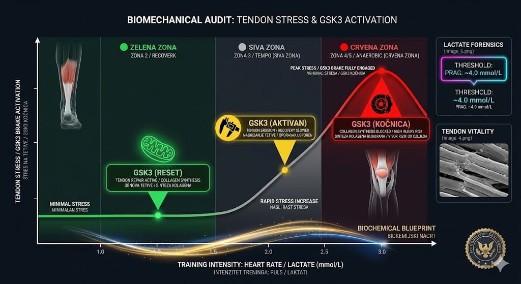 - Zona 4/5 (Vaš vrh): Zona koja gradi snagu, ali i ona koja najbrže aktivira GSK3 kočnicu (onu koju smo spominjali kod tetiva).