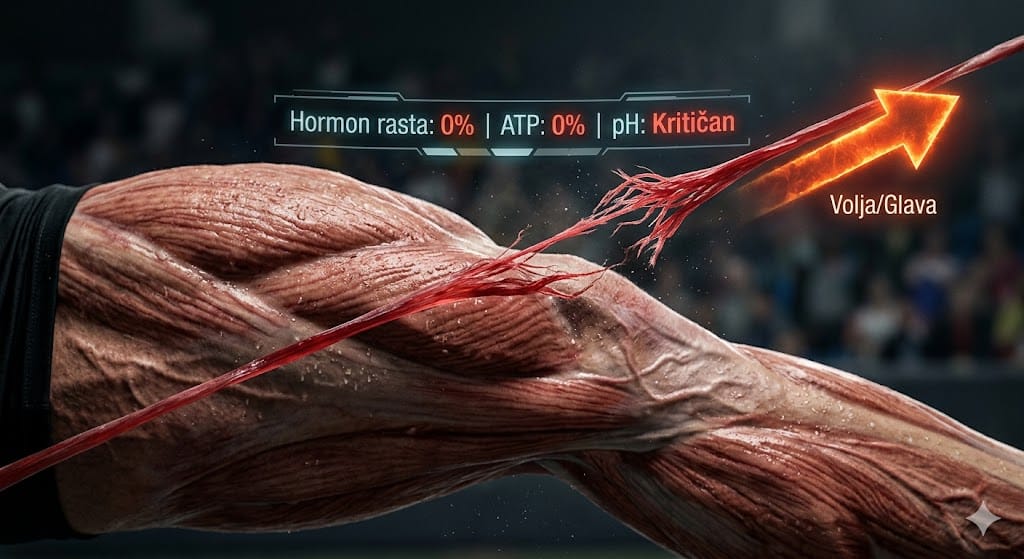 - Biokemija odgovara: „Nemam više ATP-a, razina amonijaka je kritična, pH krvi pada.“ Ako glava pobijedi u ovoj raspravi, rezultat nije medalja, nego ruptura, puknuće ili sistemski kolaps. Vi ste samo silovali mehanizam koji ima svoje jasne granice.