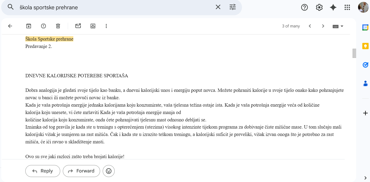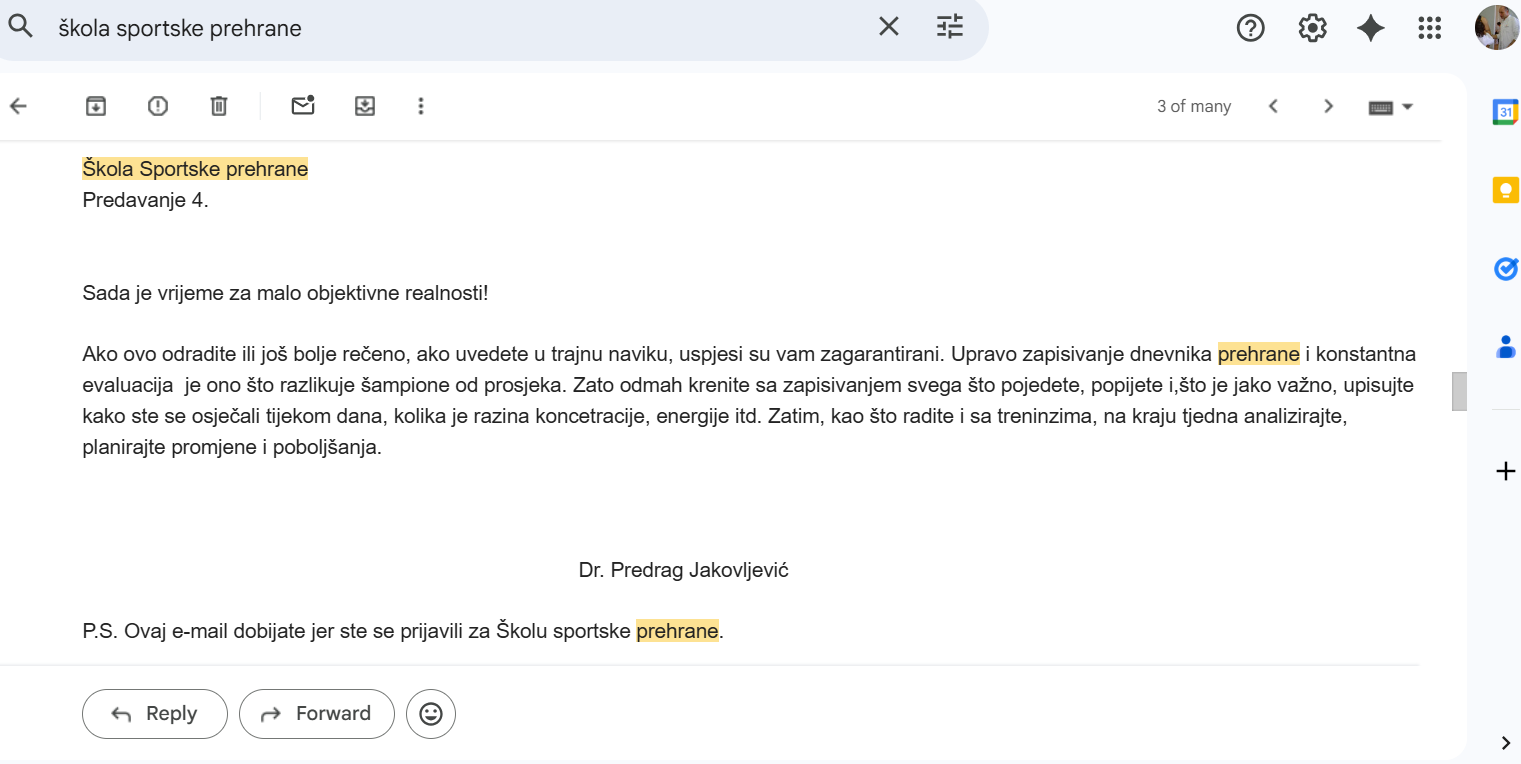Jutros sam, dok je sunce polako osvjetljavalo ordinaciju, odlučio zaroniti u digitalnu arhivu. Među tisućama nalaza, protokola i analiza, izronio je jedan e-mail iz travnja 2013. godine. Naslov: „Škola sportske prehrane – Predavanje 1.“.